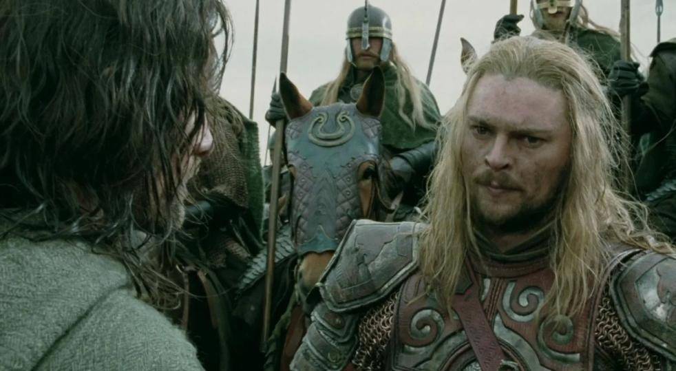 书中,阿拉贡与伊奥梅尔的碰面毫无病笃感——原因很简便,阿拉贡本东说念主就曾在洛汗马队中成立。他深谙他们的传统,能说他们的谈话,伊奥梅尔也坐窝把他当成我方东说念主。