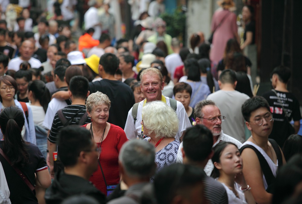 ▲沙坪坝区磁器口,几名番邦旅客正在游览古镇。(辛勤图片)