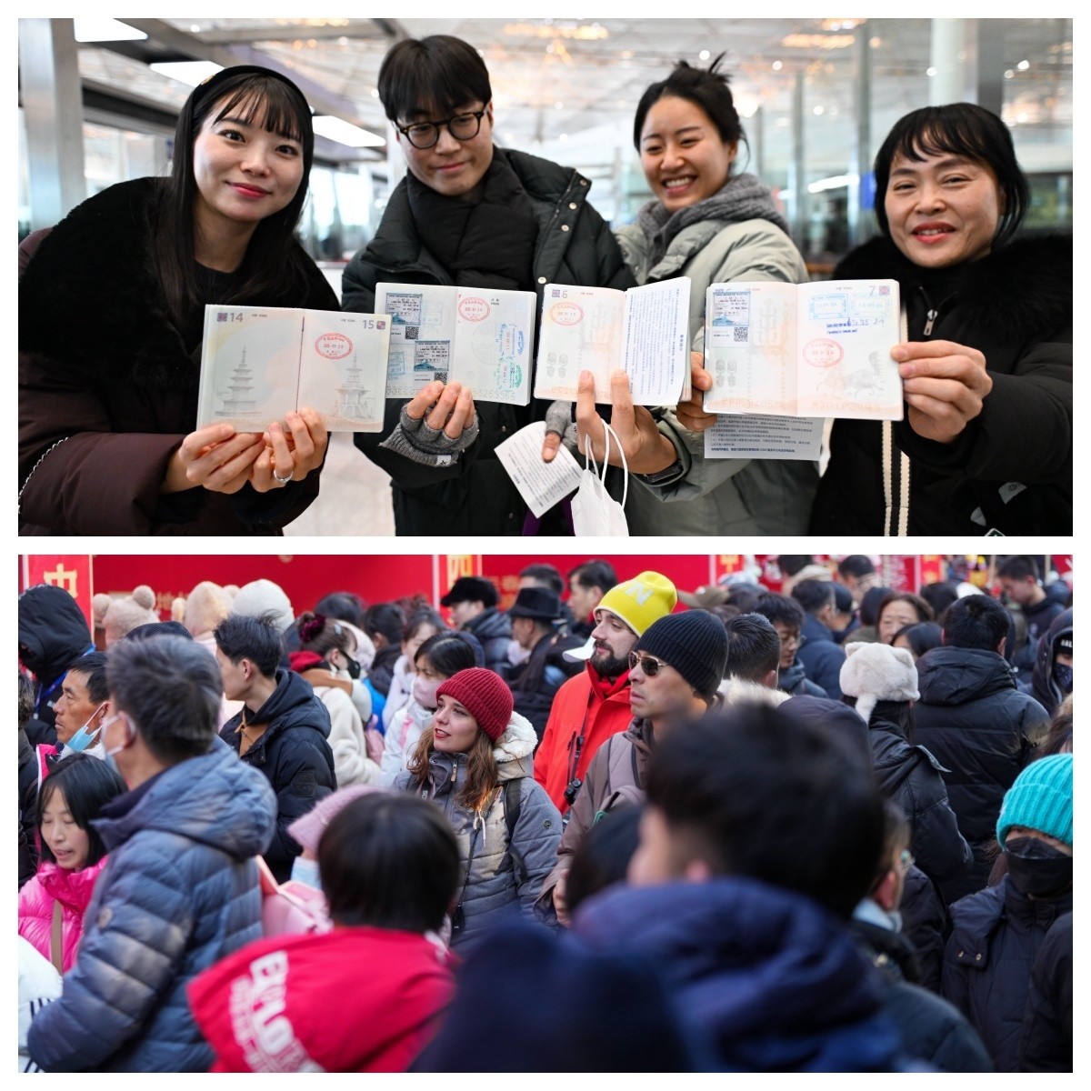 拼图:(上图)1月28日,在齐门外洋机场,四名韩国旅客应用免签战略来中国旅游,他们向记者展示着护照上的入境章。(下图)1月29日,两位来自西班牙的旅客在北京地坛庙会游览。春秋旅游副总司理周卫红先容,这场中外旅客的“双向奔赴”中,来华异邦旅客对文化和活命体验很是热衷,从博物馆到菜市集,处处有异邦友东说念主的身影;在出境游市集结,外洋邮轮居品息争脱行订单大幅增长,这体现了中国旅客更关注舒服的度假神气。