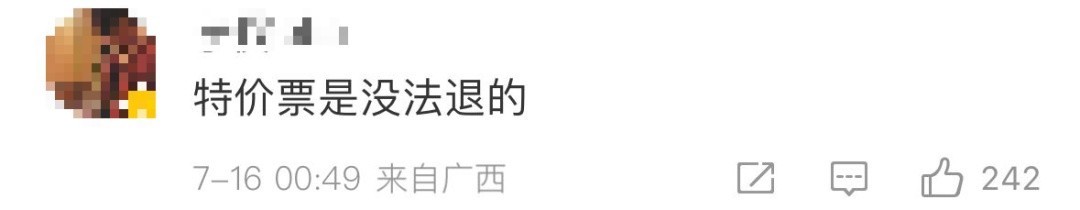 也有网友示意“特价票是没法退的”