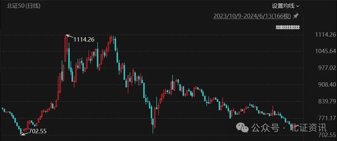 自5月24日再度跌破800点后,北证50指数震撼下行,于6月6日一度探至726.22点,尔后指数流通出现反弹并弘扬优于沪深主板市集,其中北证50指数于6月7日高潮0.93%,6月11日再度高潮0.82%。当天北证50指数收跌0.26%,报739.91点,本周以来累计高潮了0.87%。