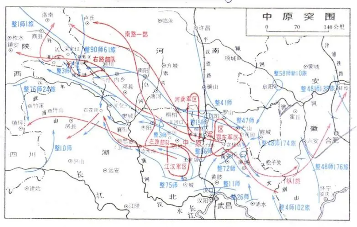 凭证华夏军区的决定,那时三军共分三路打出去(不算华夏军区独二旅),除了一纵一旅在皮定均率领下单独解围,其余部队分为两路向西解围。