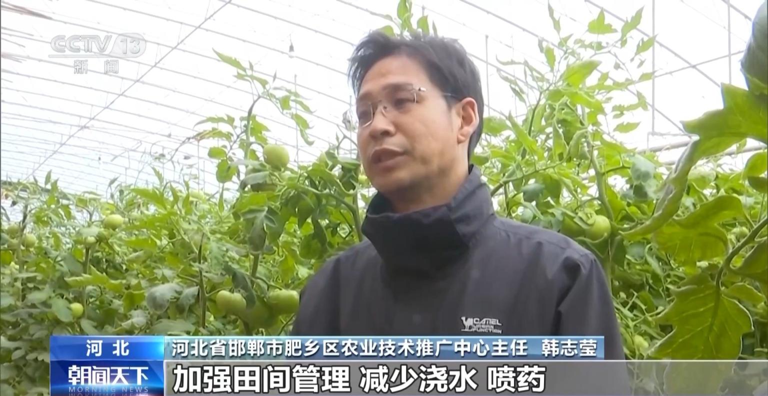 在河北肥乡韩堡村千亩面目蔬菜栽培示范区,农技东谈主员一大早便来到蔬菜栽培大户王利刚的西红柿温室大棚内,有针对性地引导菜农草率降温天气的责罚手艺重点。