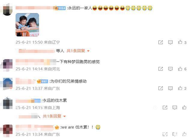 在文娱圈偶像联系像沙般易碎确当下,这一幕更显稀有。十年如一日的“伐木累”,被赋予了“初心遵照”的深意。 粉丝们更是纷纷高喊, “永远的的一家东说念主” “我一下有种梦回跑男的嗅觉” “为你们的伯仲情感动” “永远的伐木累” “weare伐木累!!”