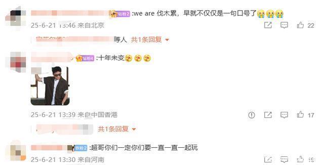 一场“芳华时空穿越”,让不少初代粉纷纷留言: “weare伐木累,早就不单是是一句标语了” “十年未变” “超哥你们一定你们要一直一直全部玩”