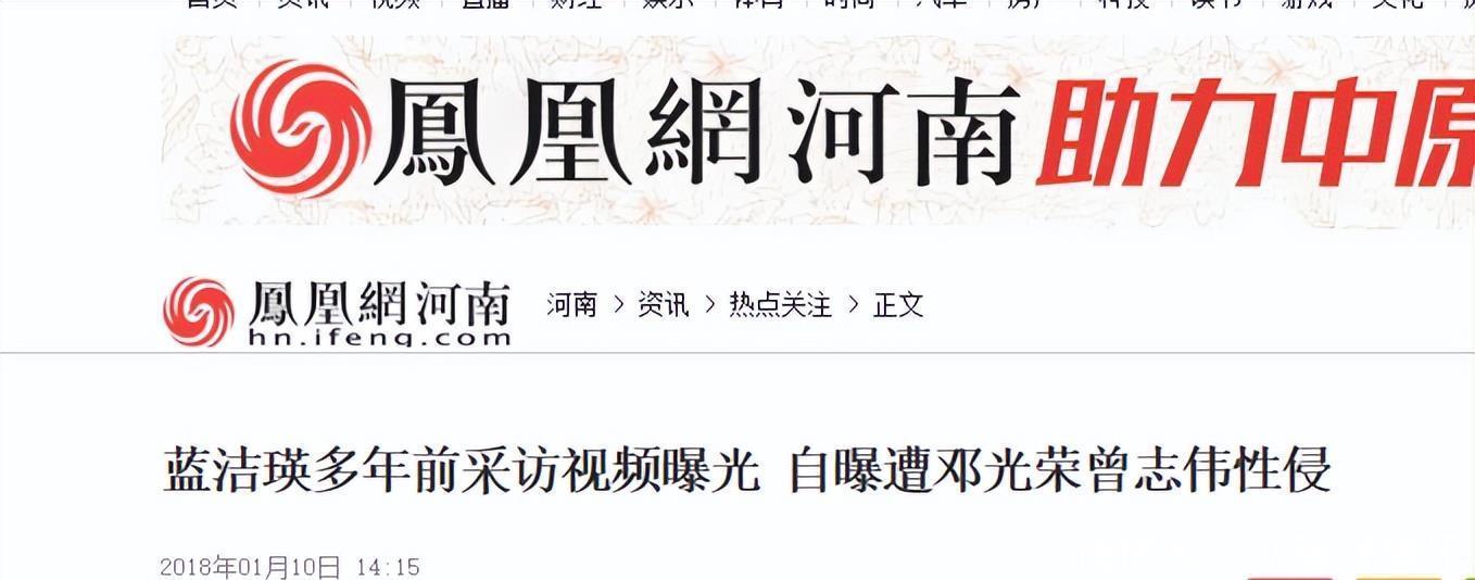 信源:凤凰网河南 蓝洁瑛多年前采访视频曝光 自曝遭邓光荣曾志伟性侵