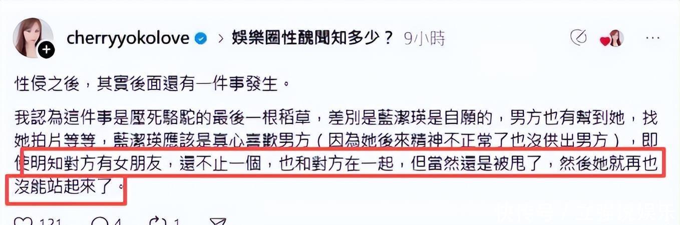 2025年的9月9日,一位网名叫“CJ Yang”的台湾网友,在我方的酬酢账号上发文爆料,她自称在影视圈使命了十几年,而她的身边也有许多的明星一又友,也了解许多这个圈里的内幕。
