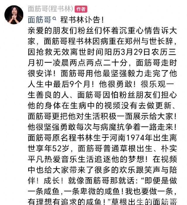 网红“面筋哥”程书林因肝癌晚期于2025年3月29日蚀本。