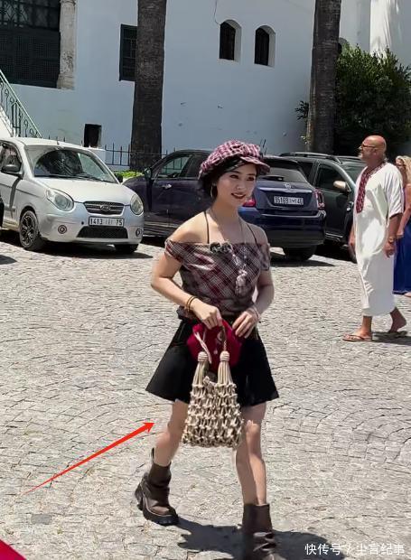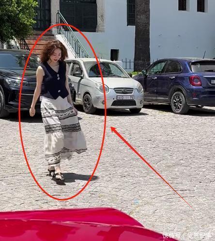 尽是卷的长发,衣服玄色的小跟鞋,一手拿着包包光是站在那里就很诱导东谈主的眼球。