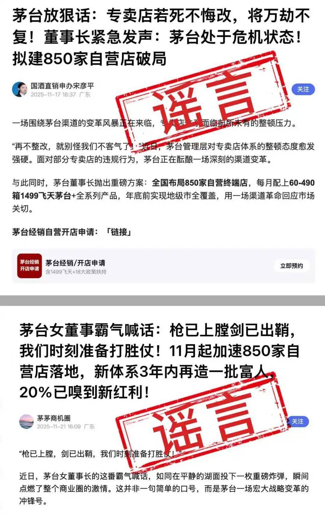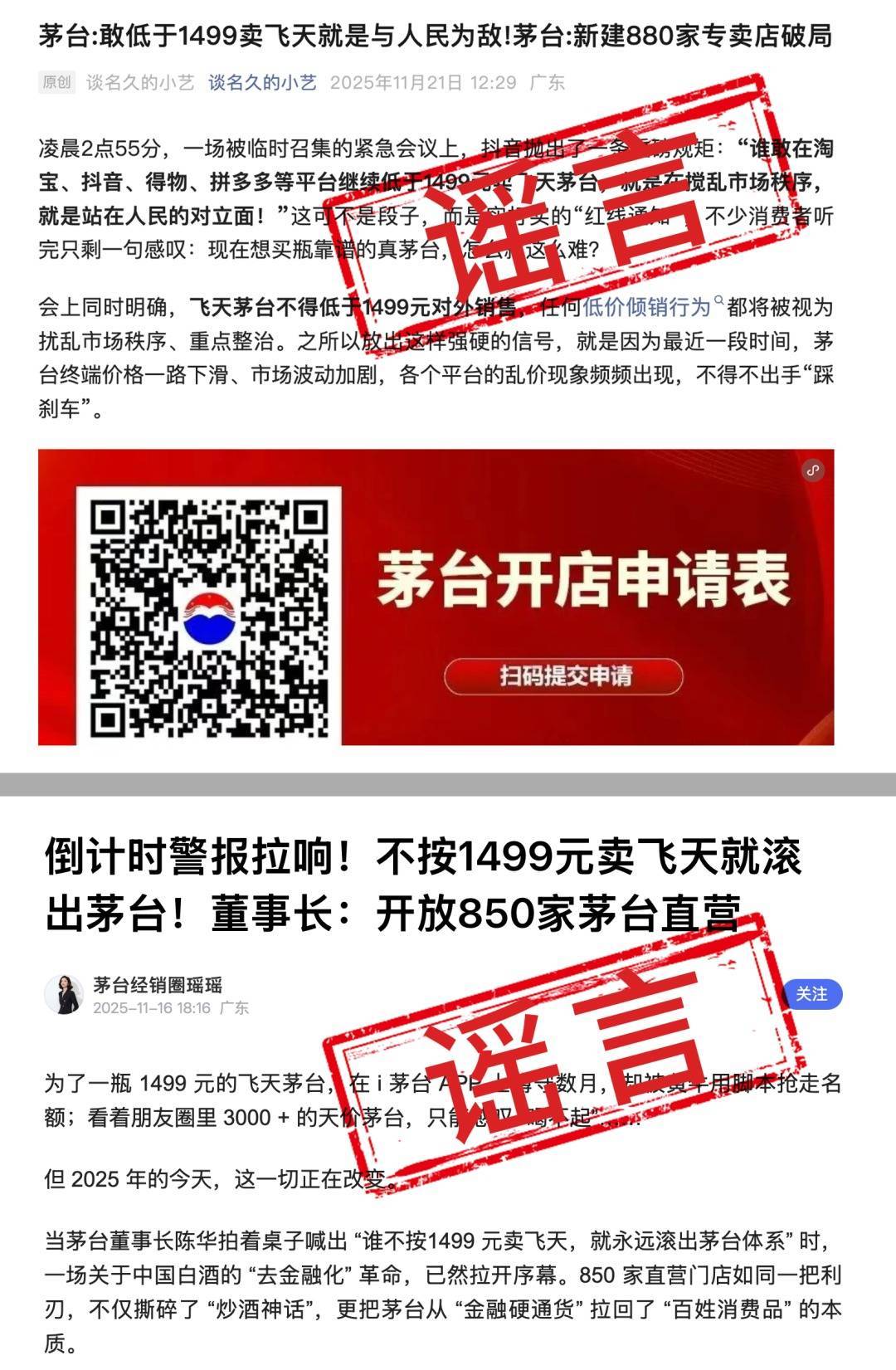 近日开yun体育网,相聚上出现了“茅台将在宇宙拟建850家直营店”“1499元飞天配额”以及借茅台指令东谈主制造话题噱头等信息。对此,记者从茅台相干部门处了解到:这些信息齐是假话,齐是假的,茅台从未发布过以上信息。