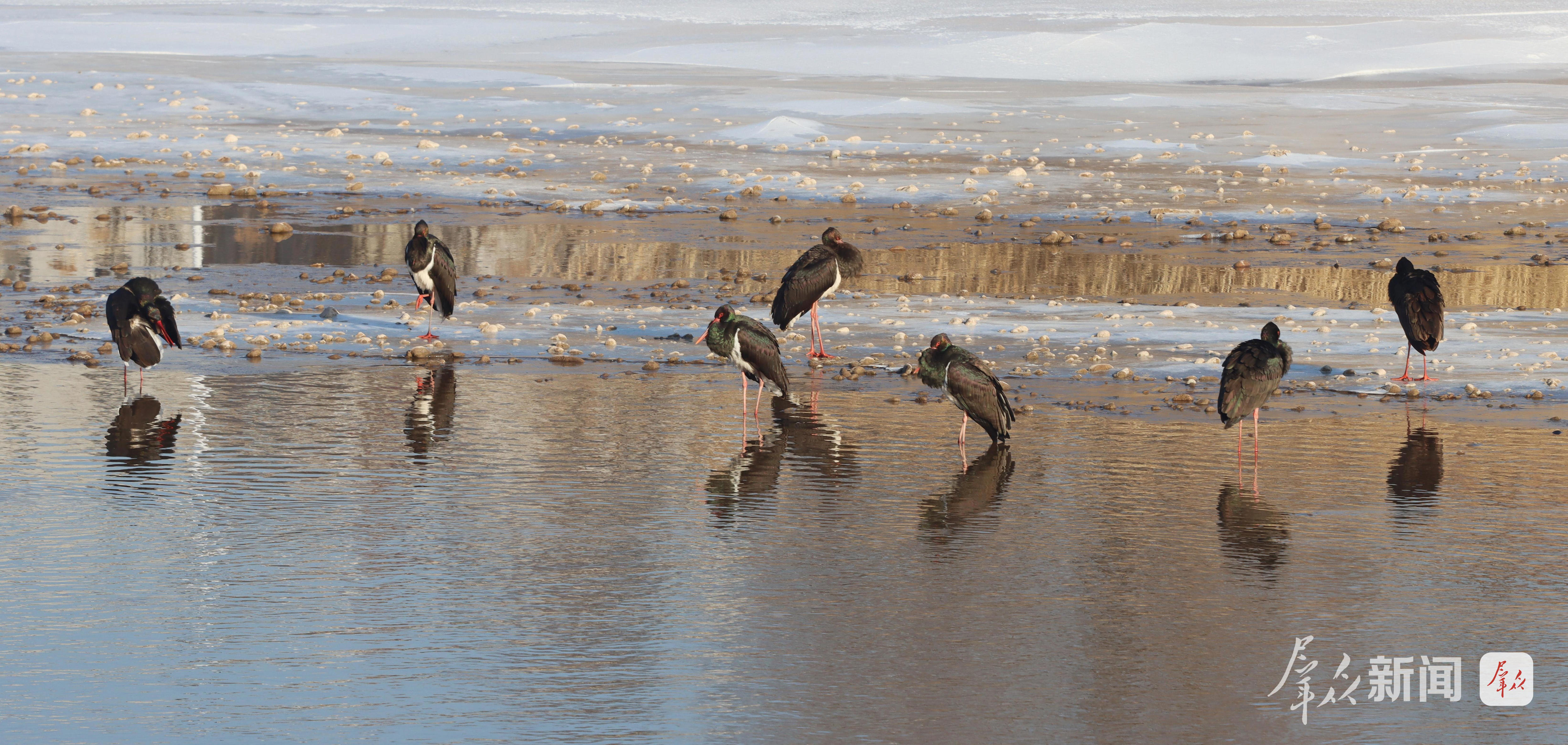 1月22日,10多只国度一级保护动物黑鹳在千河流域陇县段或栖息觅食,或翩跹起舞,成为陇县冬日一皆亮丽气候,眩惑了宽广市民和影相酷爱者。据悉,跟着陇县生态环境合手续向好,该县已成为候鸟搬动途中的进犯驿站,已吞并10年有黑鹳等鸟类“作客”陇县。