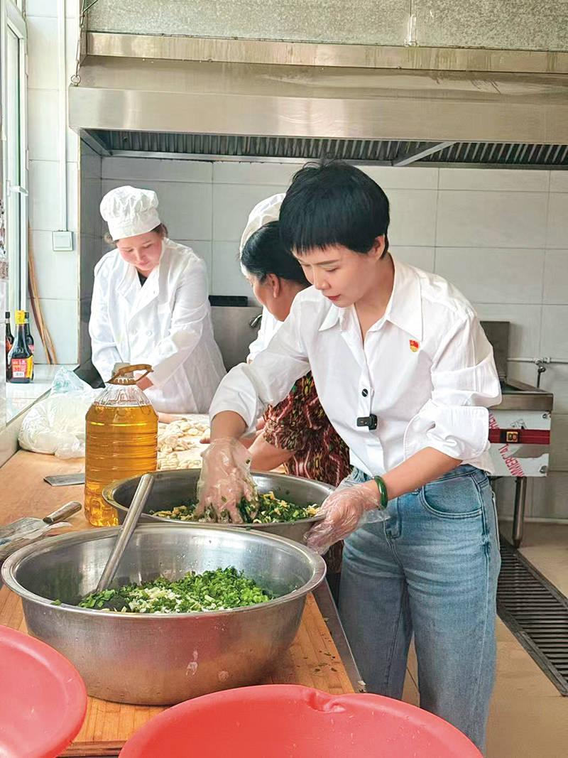 贺娇龙在喀什打听时,在喀什地区疏附县石园镇敬老院为老东谈主包饺子(2025 年 5 月摄) 受访单元供图一袭红衣踏雪来